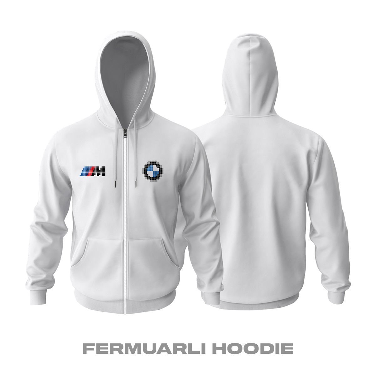 Bmw: M Pixel 2024 White Edition Fermuarlı Kapüşonlu Hoodie
