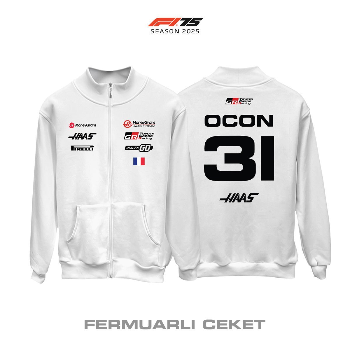 Haas F1 Team: VF-25 White Crew Edition 2025 Fermuarlı Ceket