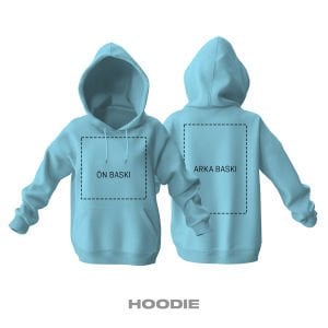 Kişisel Baskı - Buz Mavi Kapüşonlu Hoodie