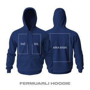 Kişisel Baskı - Lacivert Fermuarlı Hoodie