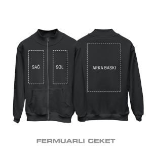 Kişisel Baskı - Siyah Fermuarlı Ceket