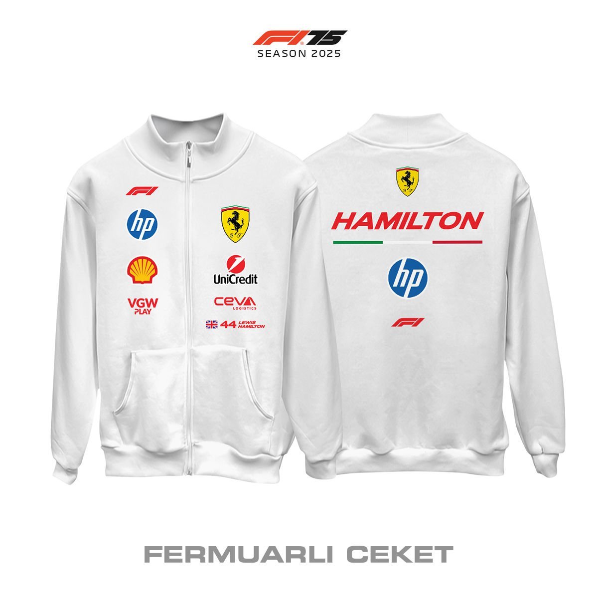 Scuderia Ferrari: SF-25 White Edition 2025 Fermuarlı Ceket